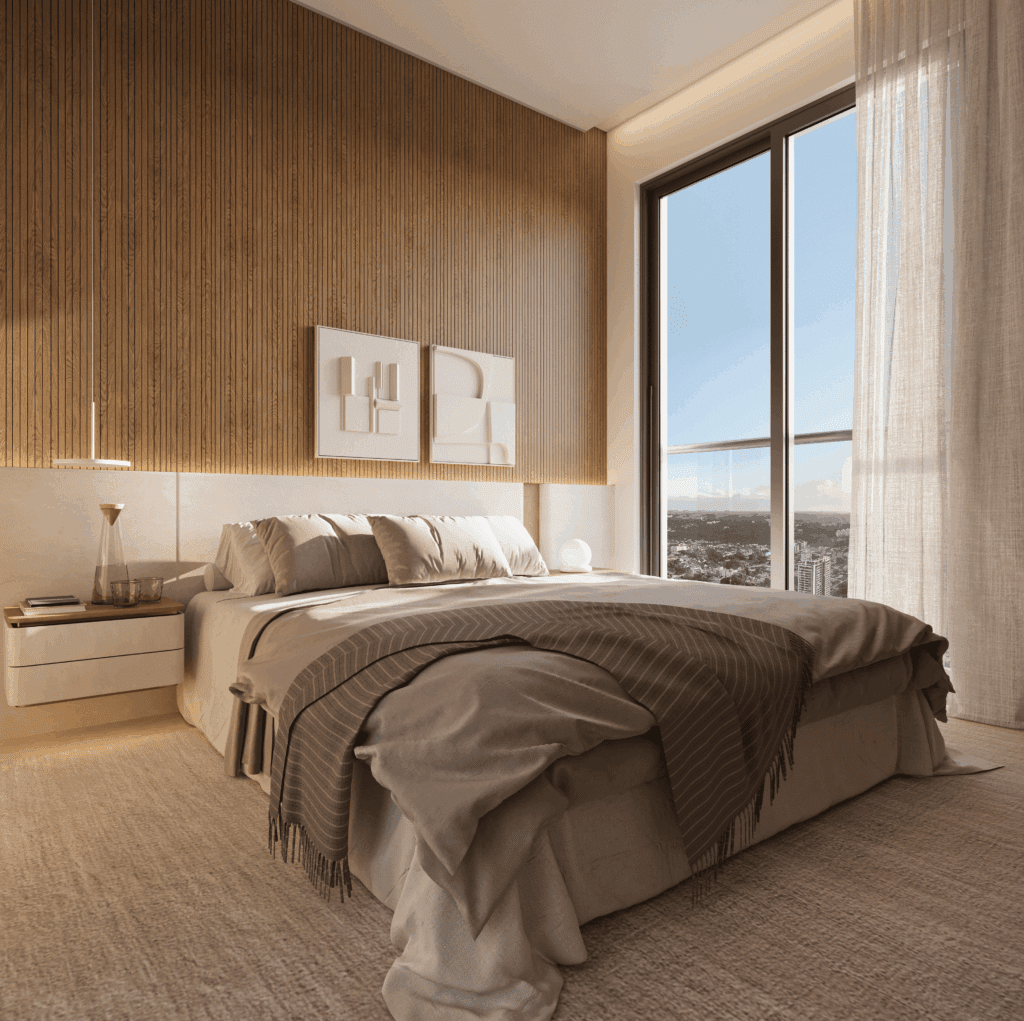 - O guarda-corpo de vidro sistema Infinity valoriza a vista e reforça o design contemporâneo, enquanto o brise móvel exclusivo em cada apartamento oferece controle total de luminosidade, ventilação e privacidade.